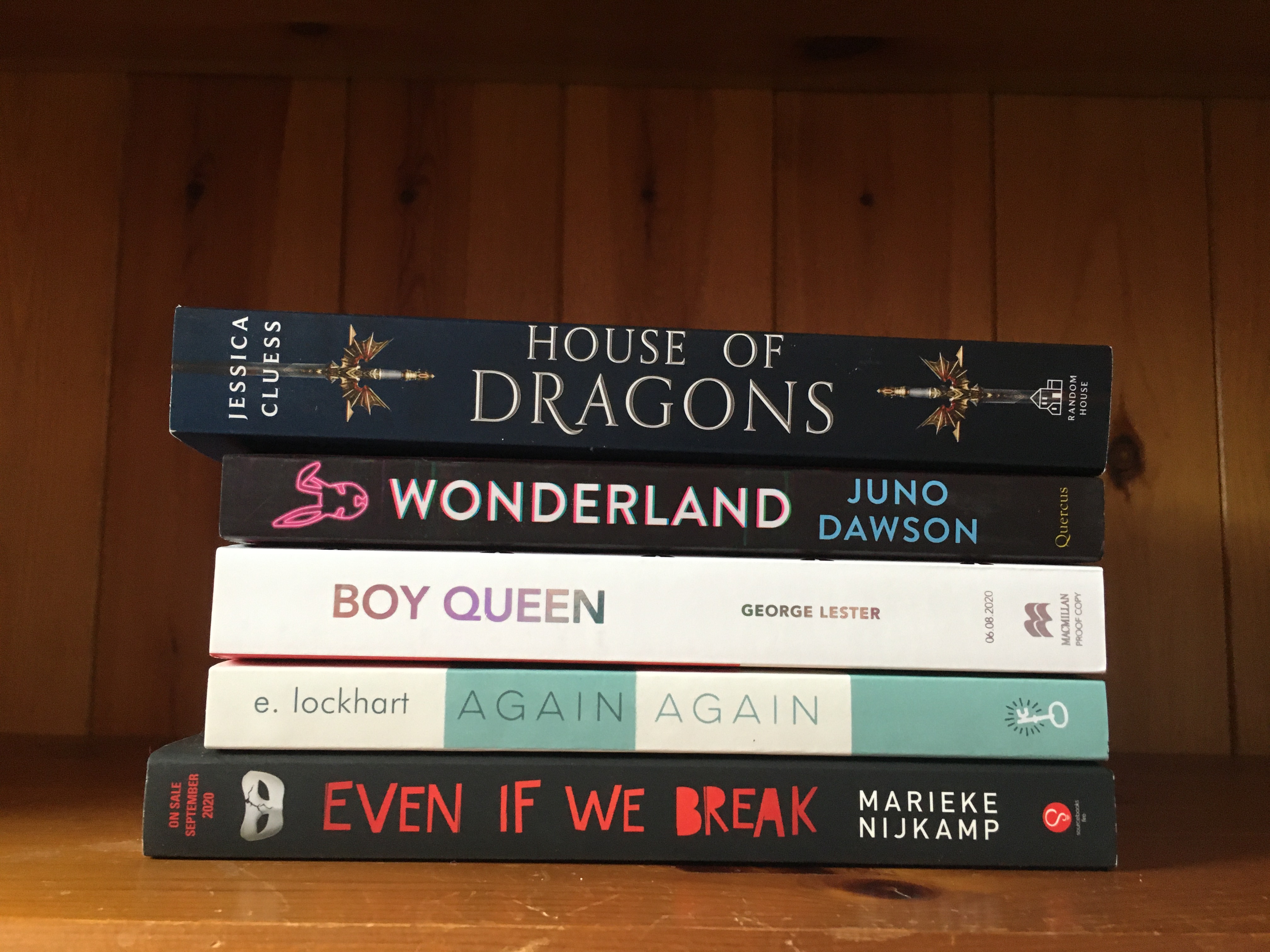 The first pile is the books I’ve been sent by amazing publishers, so thank you to Sam at Penguin Random House for sending me House of Dragons. ED PR really pulled through by sending me a copy of Wonderland, as did the awesome Liz and Hot Key Books with Again, Again. Rob at Melia generously sent me Even If We Break and I realise that I have never thanked Amber Ivatt and Macmillan Children’s Books for sending me Boy Queen!