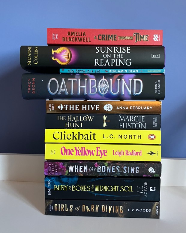 Simon and Schuster really spoilt this month by sending me a copy of Oathbound by Tracy Deonn and surprising me with a copy of The Hallow Hunt by Margie Fuston. Similarly Olivia-Savannah at Tor UK treated me to a proof of One Yellow Eye by Leigh Radford and Bury Our Bones in the Midnight Soil by V. E. Schwab. Chloe Davies at Pan Macmillan also sent me A Crime Through Time by Amelia Blackwell.